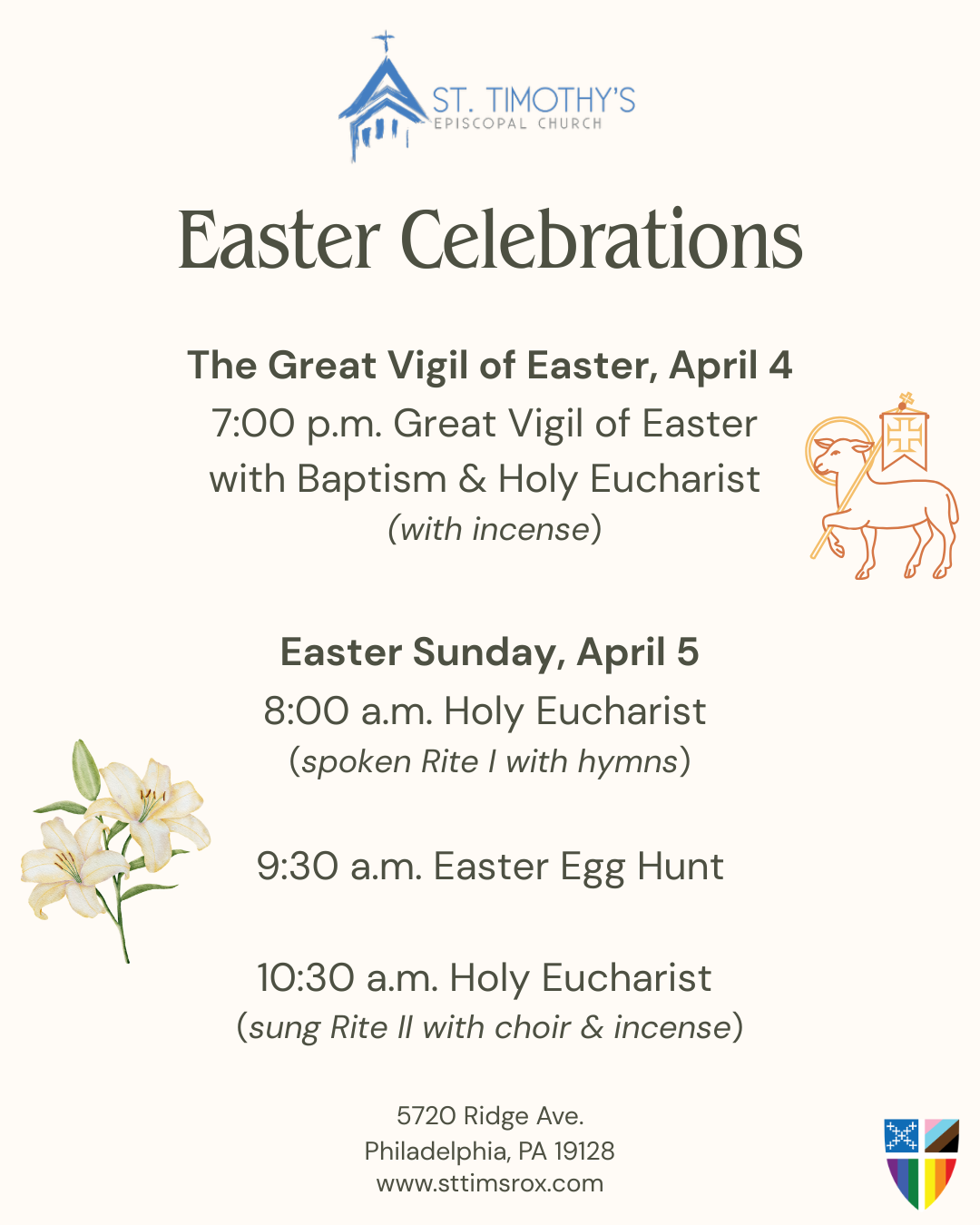 We begin in silence and candlelight, listening for the first hints of hope. We remember God’s saving work through scripture, celebrate new life in baptism, and then, at last, the church bursts into joy as we celebrate the first Eucharist of Easter.